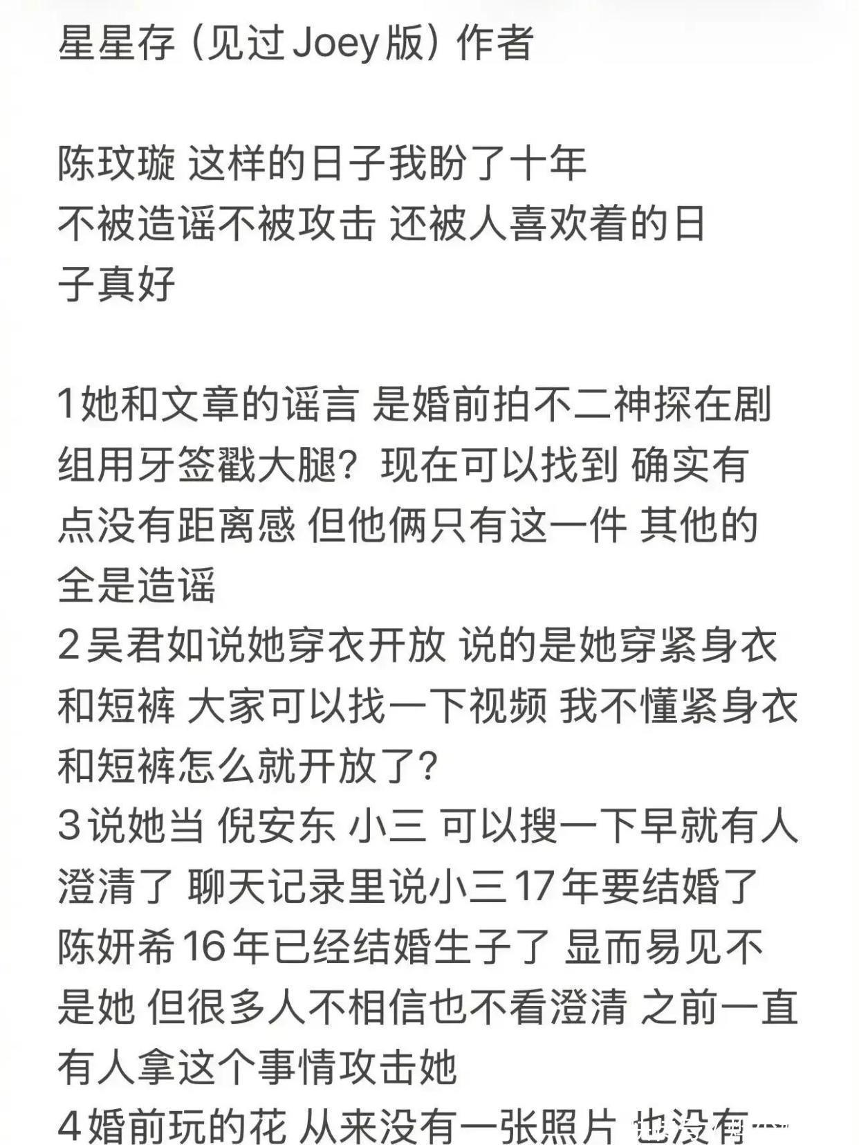 10年老粉深夜发声:陈妍希出轨传闻真相,文章无辜躺枪谁能想到,陈晓和陈妍希宣布离婚九个月后,因为“出轨”传闻又一次被推上了热搜。一直以来,这段感情的风风雨雨最好的股票配资平台,似乎还未落幕。一个有着十年粉丝身份的人站出来,逐条澄清陈妍希面对的各种质疑,这让很多网友开始重新审视这段关系,也带来了不小的轰动。