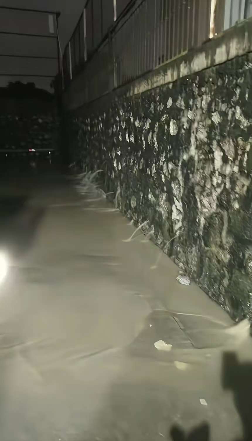 视频显示,一面疑似石制墙面(建筑)多处喷水,该用户发布的内容显示,这一情况与洪水有关。视频发布者账号中亦有多个有关洪水的视频,并表示“希望大家平安”。